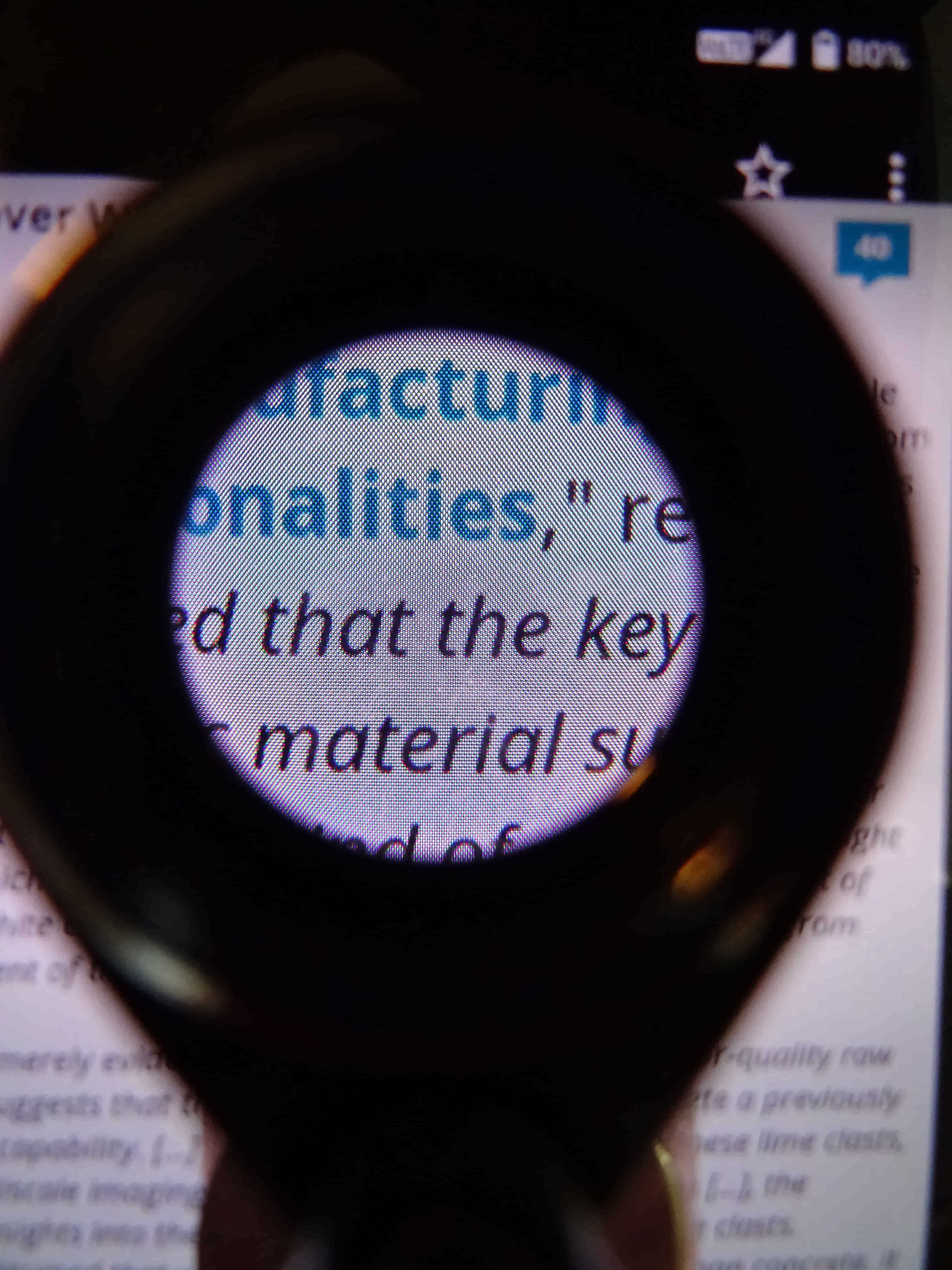 To be fair, only a tiny portion on the image comes out actually sharp, while the rest is heavily distorted, but for things that either gives off its own light (like the screen) or things I can backlight (say, by putting them atop my phone, showing a white picture, at max brightness), I can get a few millimeters square reasonably magnified.