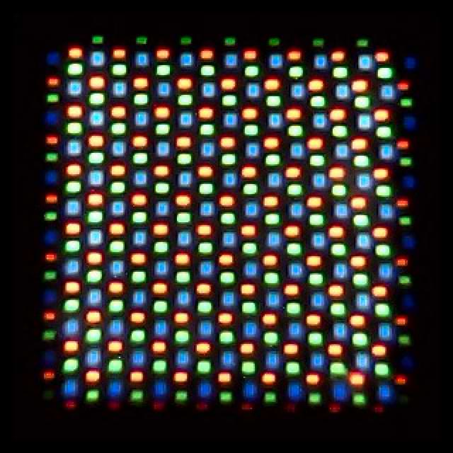 I may have to draw some test images and (try to) take close-ups of, to verify that a full triplet per pixel is actually used.