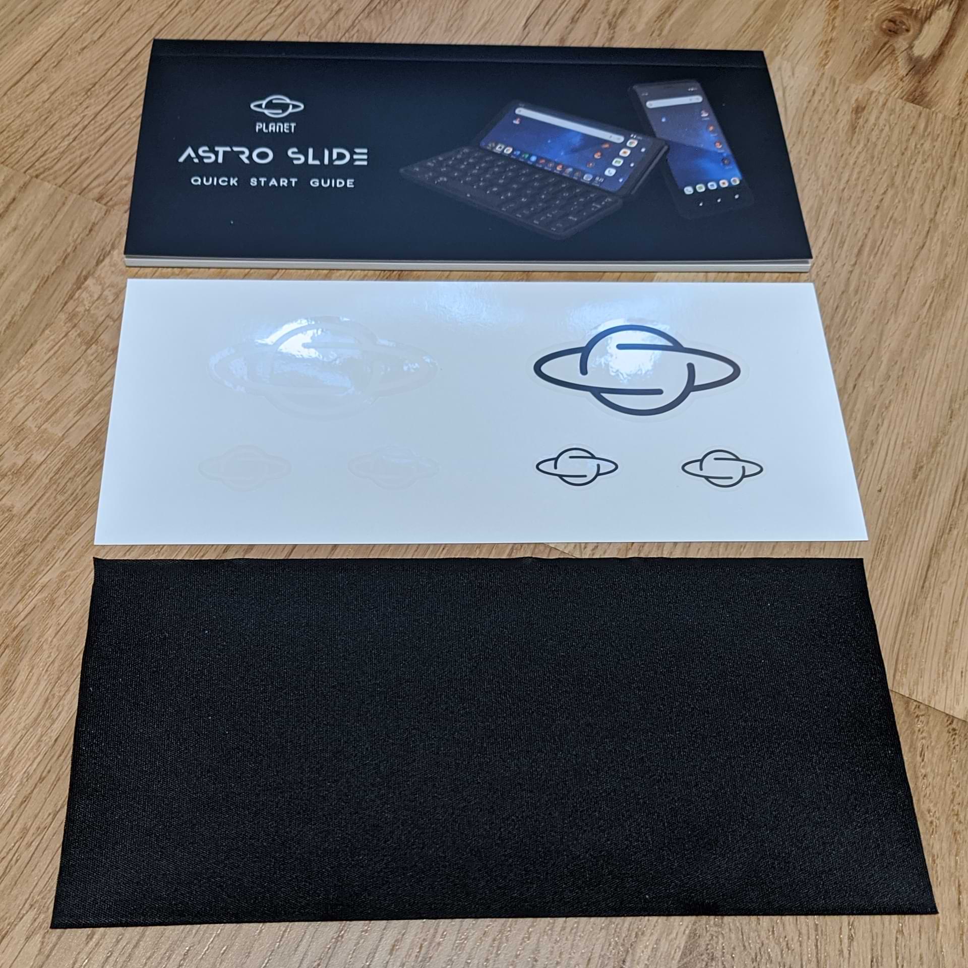 Inside the thing the tool sat on, is a quick guide, a sheet of stickers and a really thin microfibre cloth: