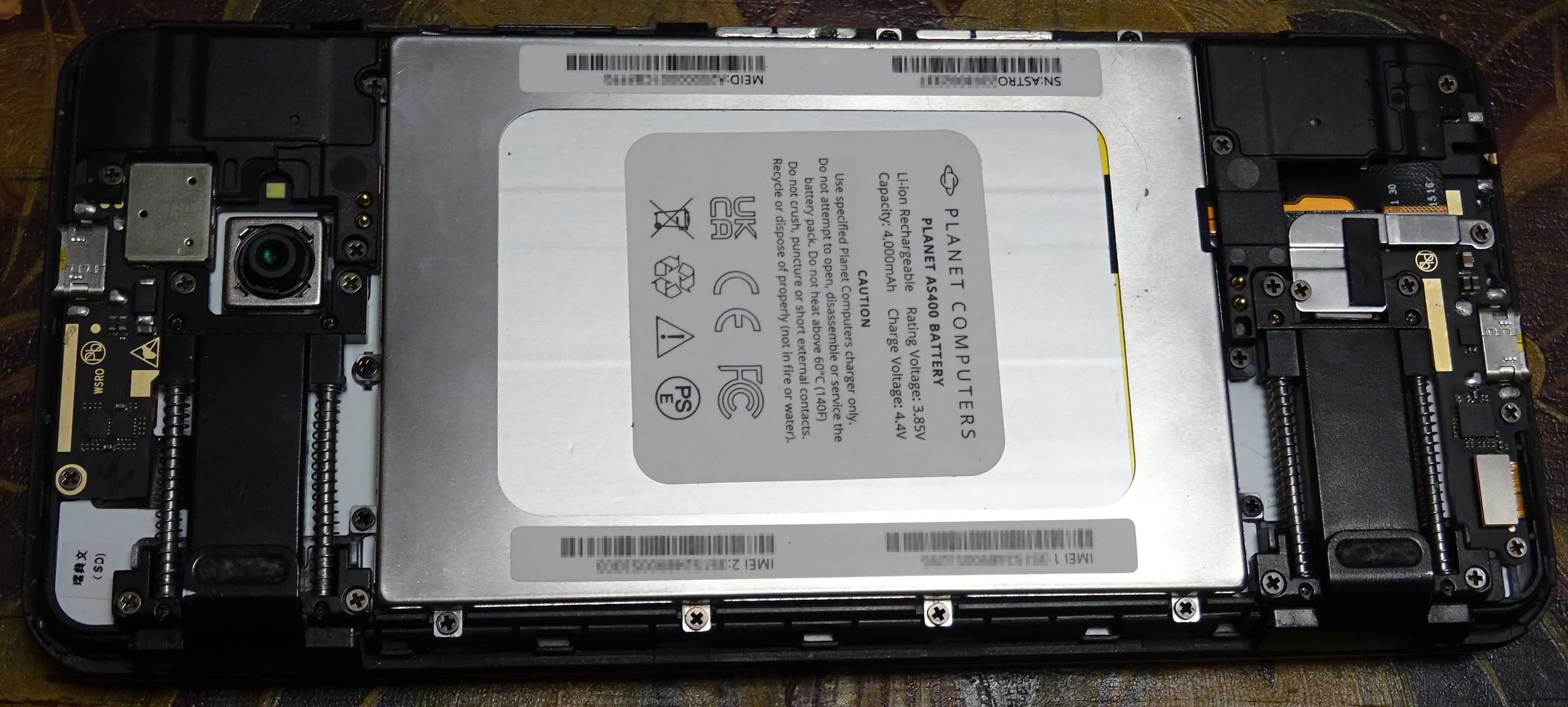 I am posting to this old thread to keep these together with my previous Astro photos. Since the screen of my Astro didn't turn on again after the V07 Android update, I've been looking for things to try. Today, I carefully took a guitar pick and some patience to the rear cover to see if I could briefly unplug the battery to completely power cycle the motherboard (running down the battery until the Astro turned off didn't help). What I found looked a bit too scary to begin disassembling nilly-willy, so I just took a quick pictures and snapped the cover back on. Getting it to completely snap back into place was about as hard as getting it off in the first place. It seems it would be easy to break some little piece of plastic. Anyway, here's my pictures: