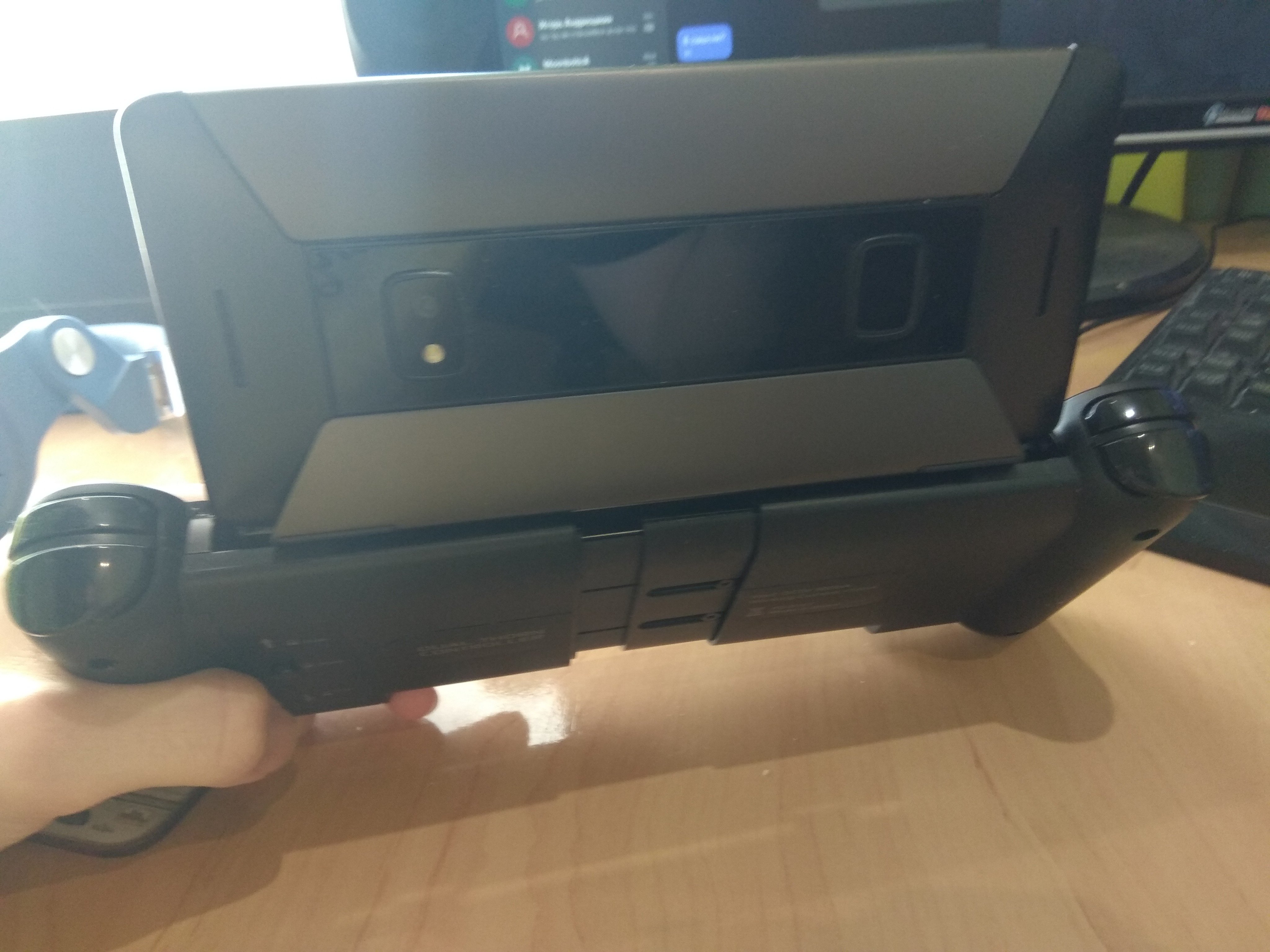 Thanks. I would be happy to contribute to Wiki as well. Cosmo is stable and solid with both controllers. No danger at all. Controllers size perfectly fits Cosmo, they can't touch the screen at all. If you will push the screen itself with your finger too much it can potentially break but why will you force push it if everything is mapped to controller? I've attached some pictures, you can take a look