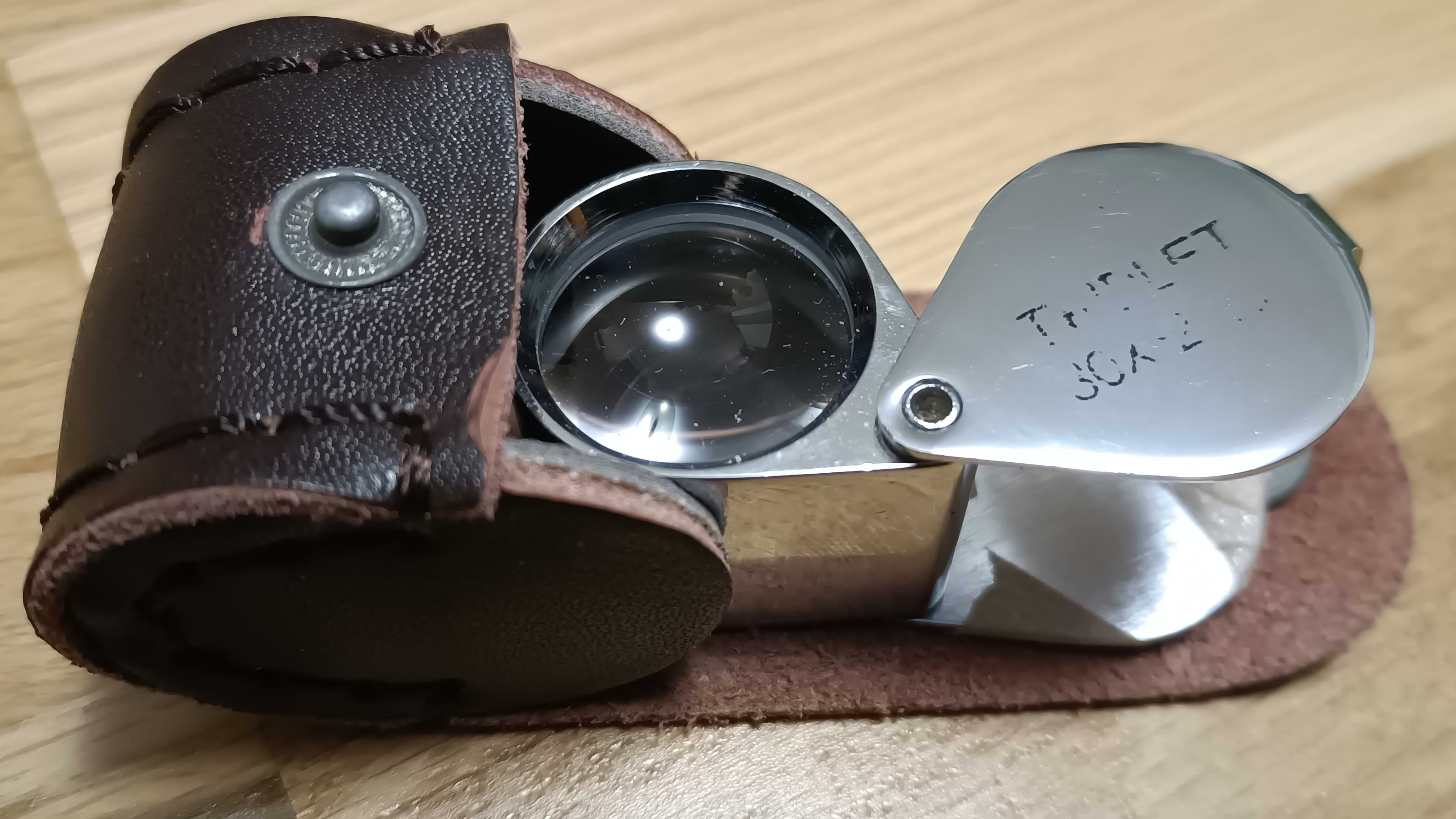 Once upon a time I picked up a "30x triplet loupe", for a few tens of dollars. That is the round thing you can see a hint of in the first picture above. Here's a better picture of it.