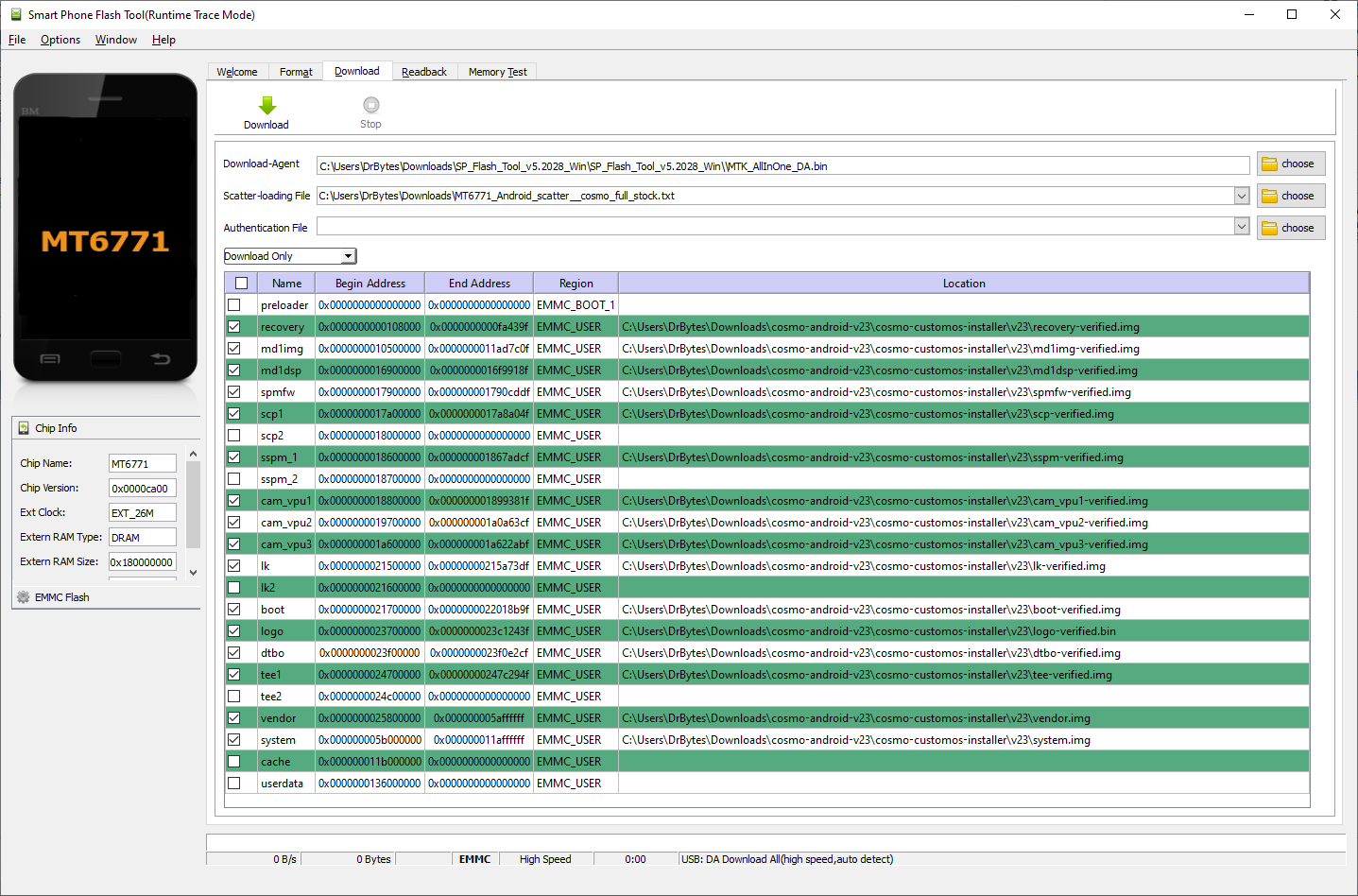 When I flash the phone at first the status bar goes red with some information. The window looks like this: