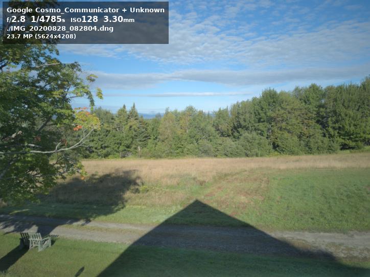 Now some of you are wondering about other camera apps like OpenCamera.  Garbage.  Forget it.  OpenCamera is great on other phones, but it produces the same toilet-quality images on the Cosmo as the stock camera app thanks to the underlying closed-source MediaTek libraries.  And for whatever reason, it can't save RAW images (produces a zero-length file).  At this point I don't know why the F1MinimalMod2.1 GCam port is able to save RAW while other apps can't, but I will surely find out in time if someone doesn't beat me to it.  I may even port GCam to the Cosmo.  After all, Planet Computers promised a "fantastic camera" (their own words on the Indiegogo story page).  They have not delivered!  But the Cosmo's camera sensor is indeed capable of delivering fantastic images!  Planet Computers, are you reading this?  Seriously, MediaTek, what were you thinking?  How can you knowingly butcher such fantastic image quality and assume no one will notice?