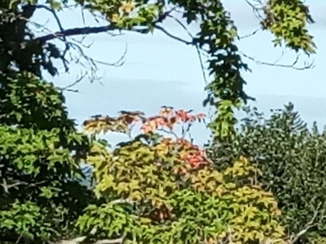 Same 100% crop from RAW.  Blue, partly cloudy sky, and detailed green trees:
