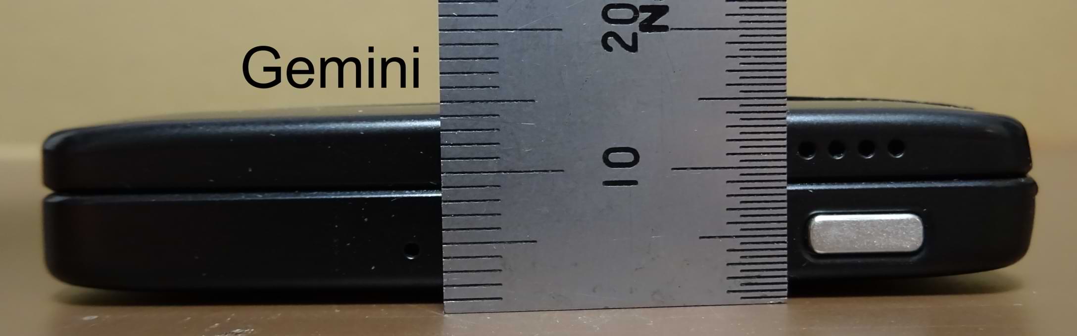 While, in the following, I could have tweaked the perspective to whatever, I have tried to reproduce what I saw with my own eyes. Here's a side view to compare the thickness of a Gemini (left), an Astro (center) and a Cosmo (right)