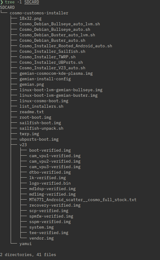 OK, so for example, this is what my development Cosmo 'looks like' on the SD card - where 'SDCARD' is the 'root' of the card.
